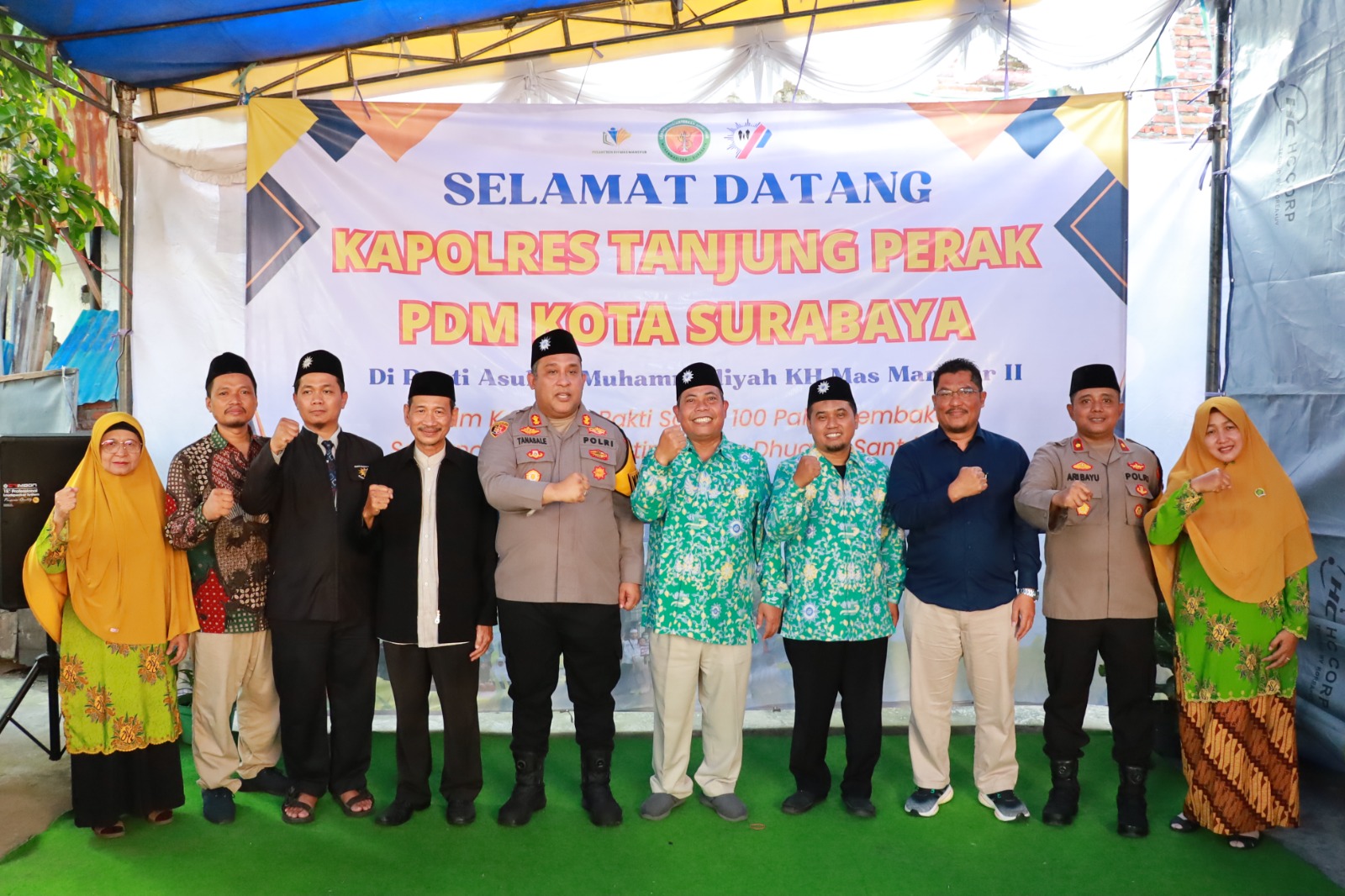 Polres Pelabuhan Tanjung Perak berikan santunan kepada anak yatim dan memberikan bhakti sosial di Panti Asuhan Muhamadiyah KH. Mansyur ll Surabaya, pada Selasa (19/03/2024).