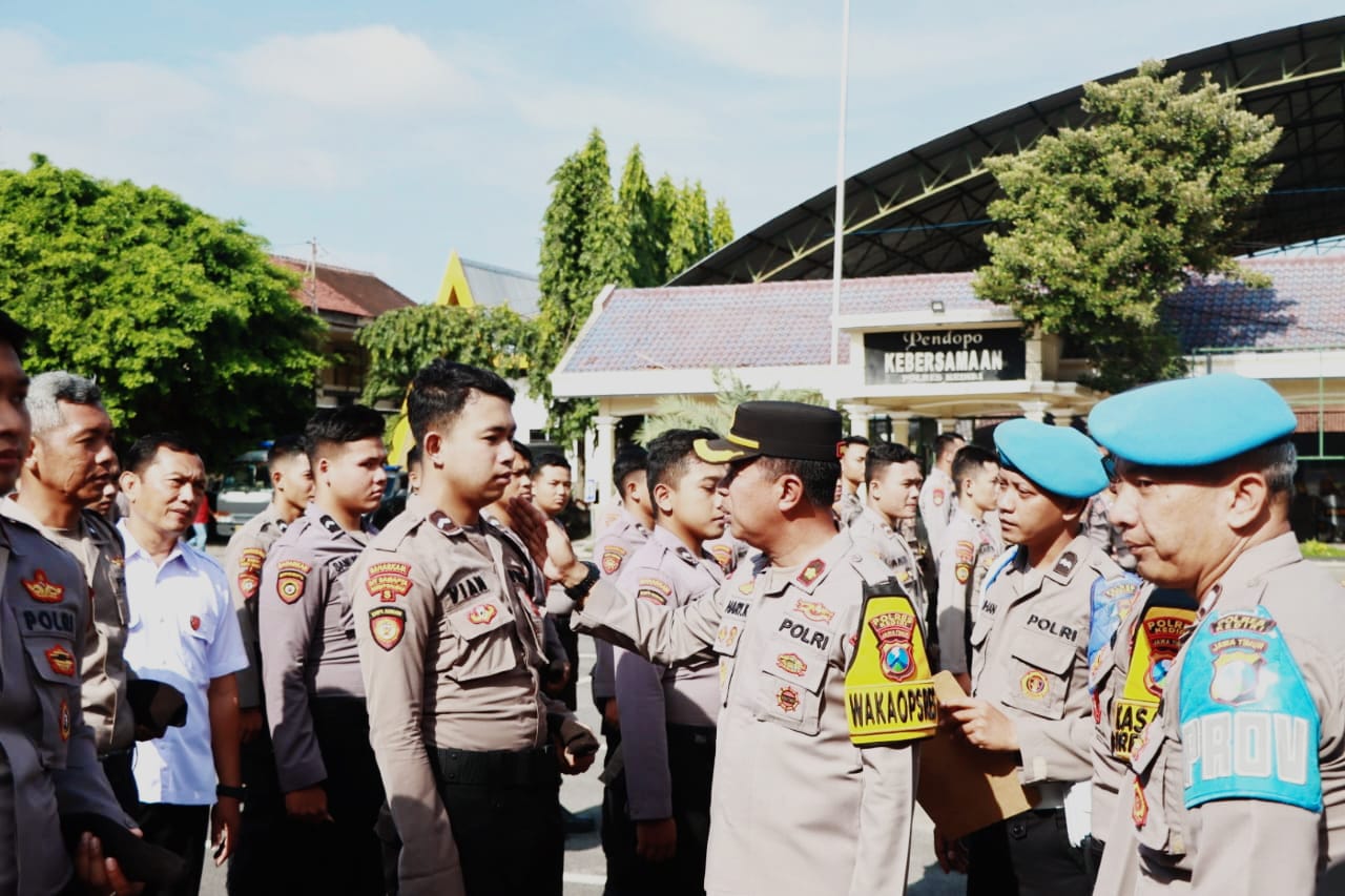 Usai memimpin apel pagi, Wakapolres Kediri Kompol Hary Kurniawan, S.H., M.H. melaksanakan pengecekan kelengkapan identitas dan kerapian anggota Polres Kediri, Senin (6/1/2025).