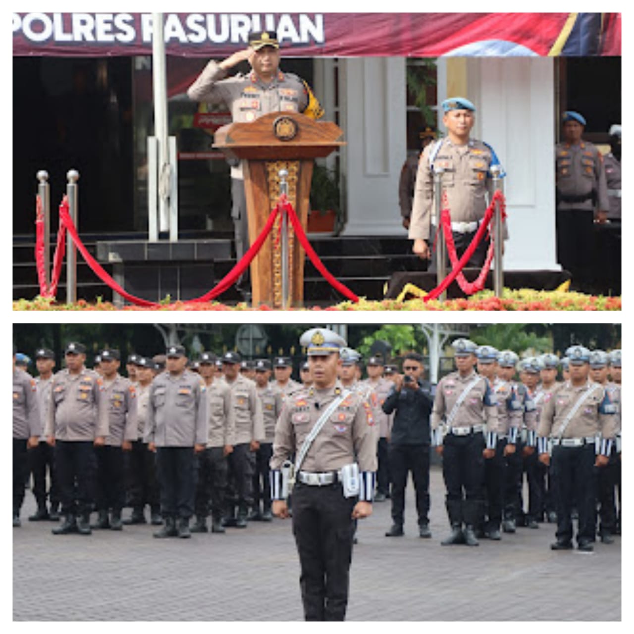 Upacara tersebut dipimpin langsung oleh Kapolres Pasuruan AKBP Teddy Candra, S.I.K., M.Si., yang diikuti oleh PJU Polres Pasuruan, Kapolsek jajaran, Perwira Polres Pasuruan, seluruh Personel dan PNS Polres Pasuruan, serta perwakilan personel Polsek jajaran.