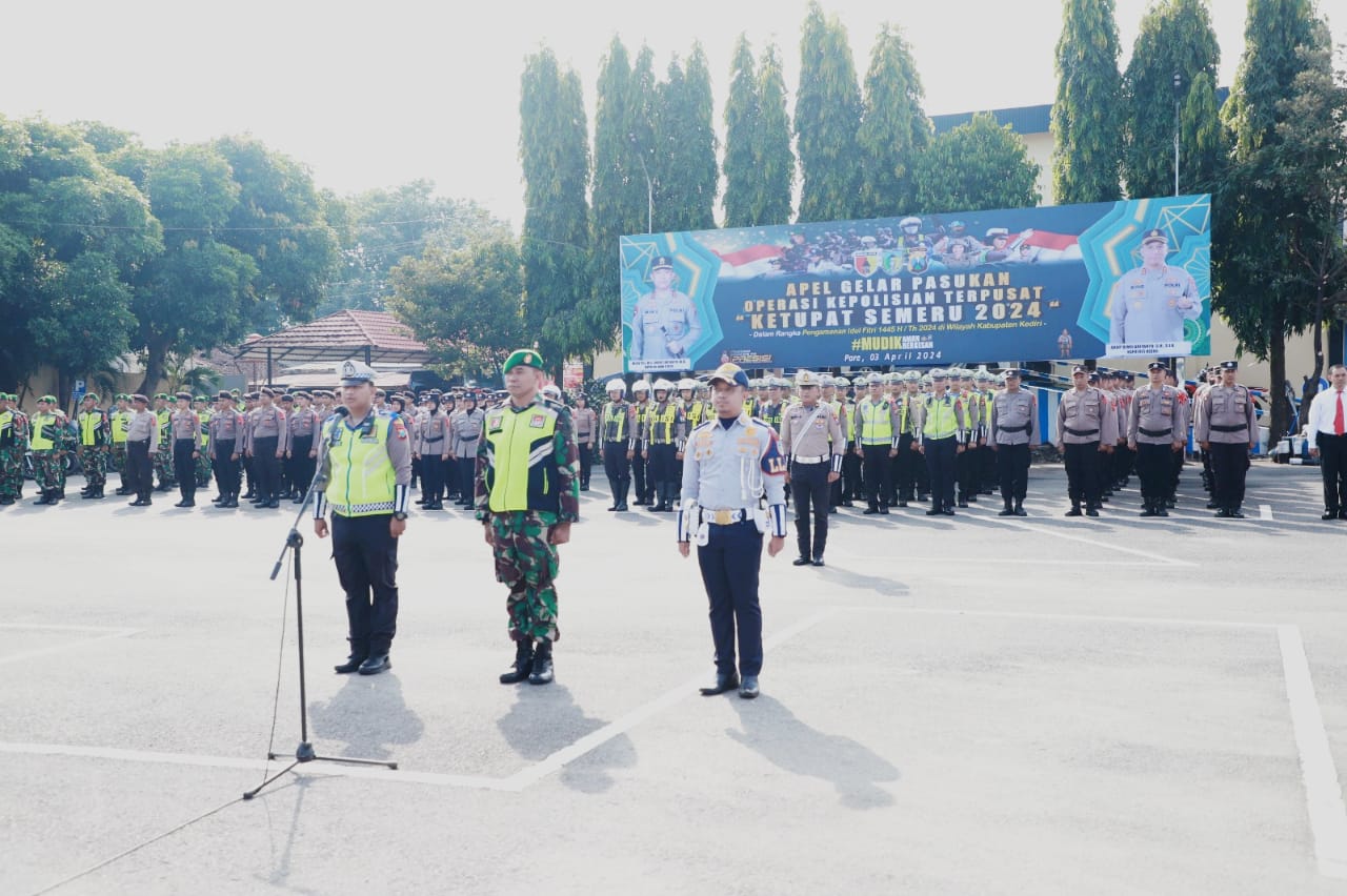 KEDIRI RAYA| NUSANTARA POS COM|| Polres Kediri menggelar upacara apel gelar Pasukan Operasi Ketupat Semeru 2024. Apel itu dilaksanakan di halaman Mapolres Kediri, Rabu (3/4/2024) pagi.