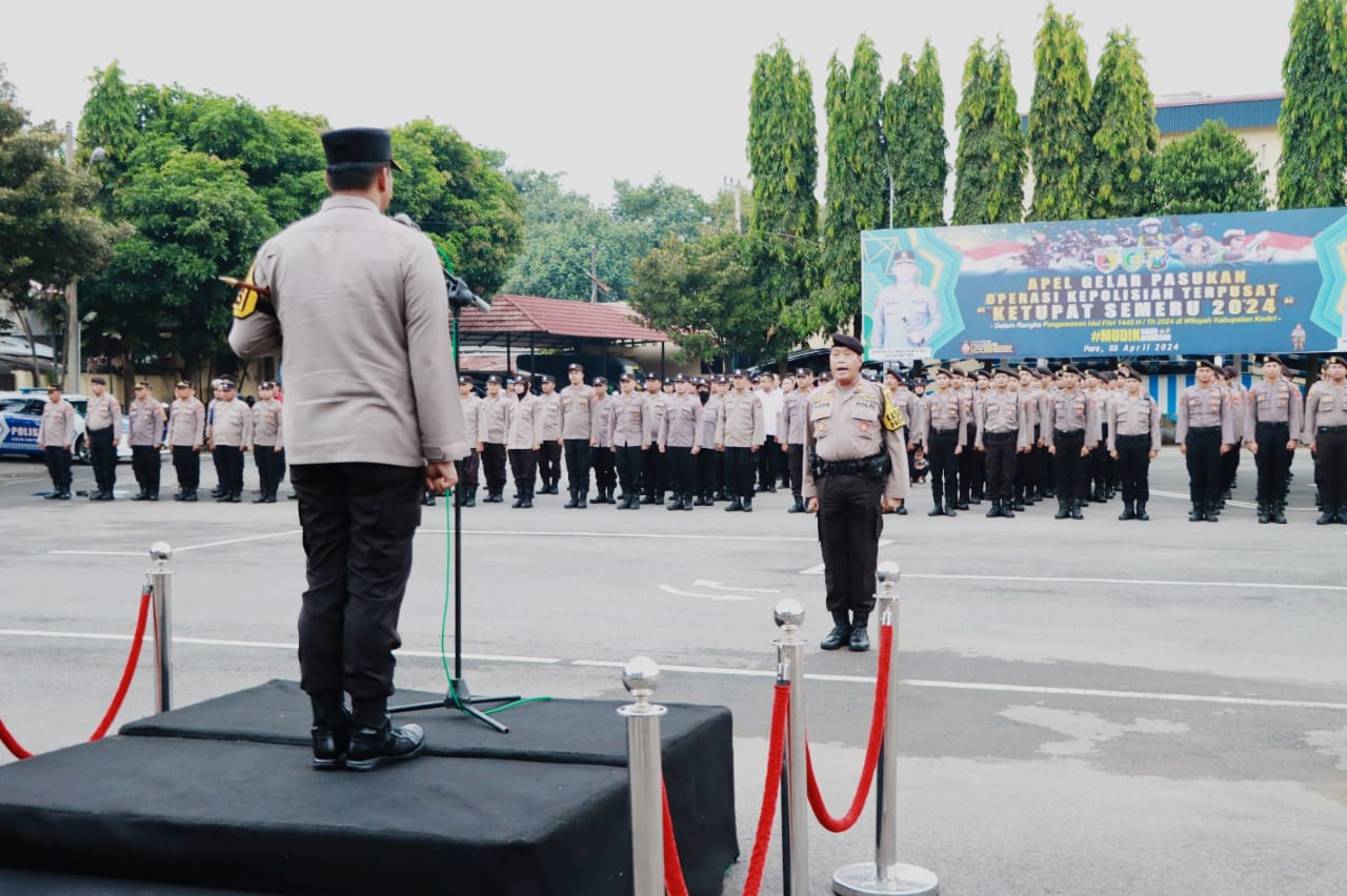 KEDIRI RAYA| NUSANTARA POS COM|| Polres Kediri menggelar apel pasukan pengamanan malam takbir lebaran. Apel ini dilaksanakan di halaman Mapolres Kediri, Selasa (09/04/2024).