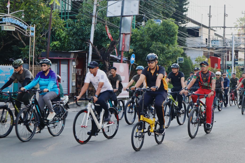 KEDIRI KOTA| NUSANTARA POS COM*-|| Kapolres Kediri Kota AKBP Bramastyo Priaji, S.H., S.I.K., M.Si. bersama Forkopimda Kota Kediri mengikuti Fun Bike dan senam bersama dalam rangka HUT Brigif 16 Wira Yudha, Sabtu (20/4/2024)