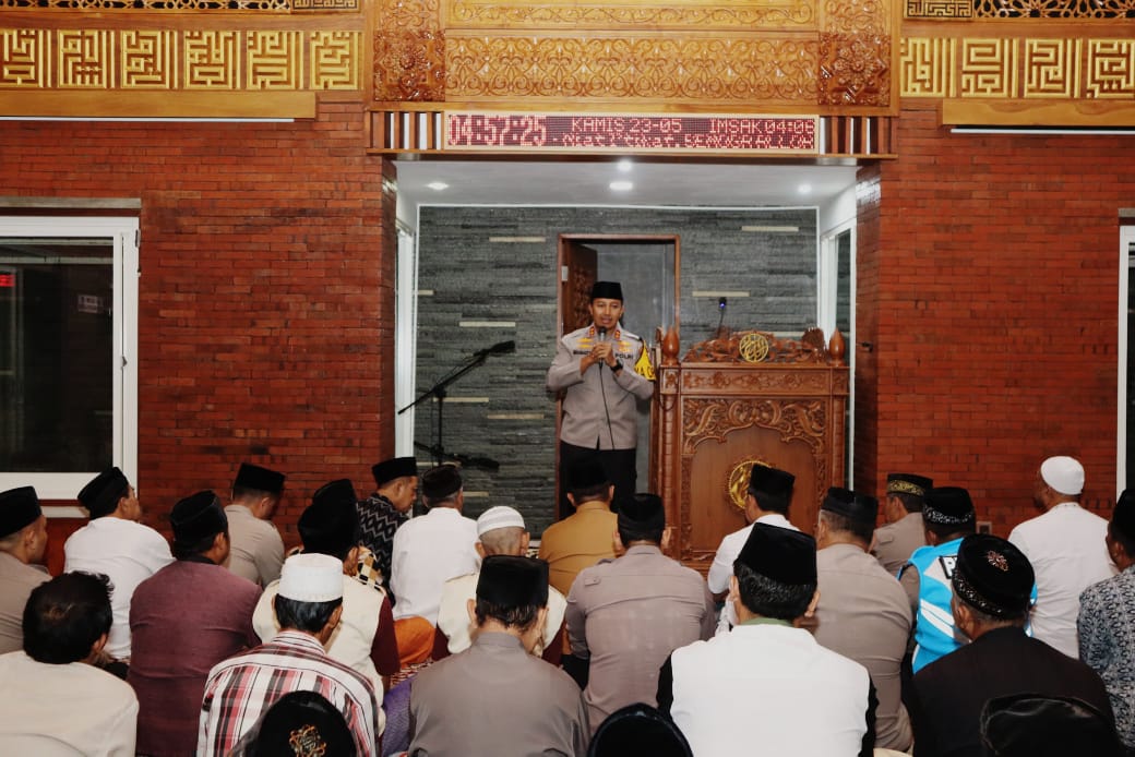 Usai pelaksanaan sholat subuh, Kapolres Kediri Kota menyempatkan diri untuk menyampaikan pesan-pesan kamtibmas kepada jemaah sholat subuh yang hadir di masjid tersebut.