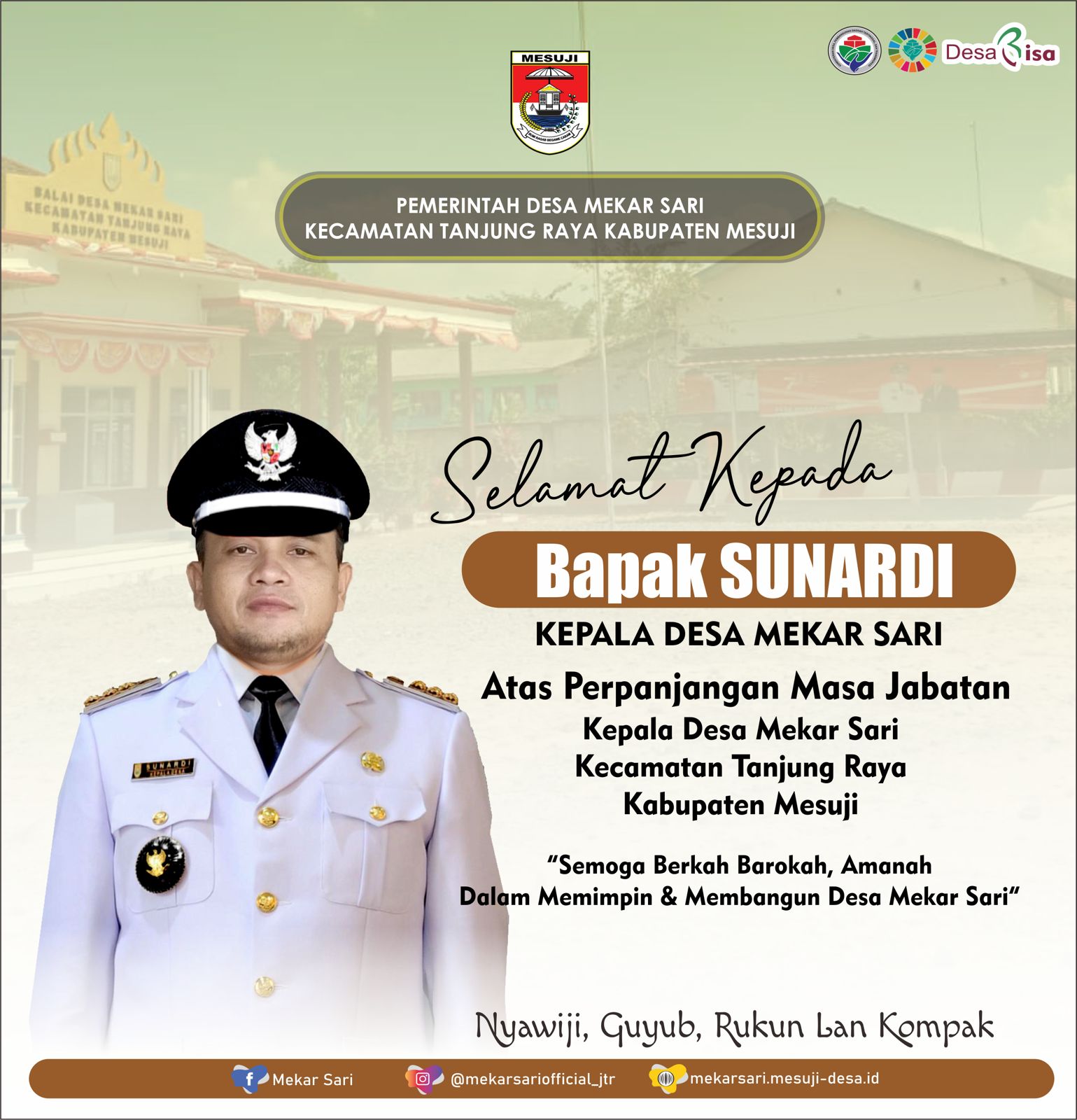 Mesuji // Nusantara -post.Com Kamis 18/07/2024 Selamat atas perpanjangan masa jabatan Bapak Kepala Desa Bapak ( Sunardi ) kepala Desa Mekar Sari Kecamatan Tanjung Raya kabupaten Mesuji yang menerima Surat Keputusan (SK) Bupati Mesuji terkait penyesuaian masa jabatan.