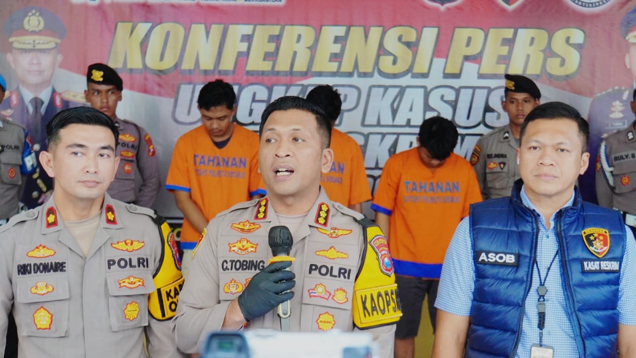 “Ada tujuh yang kita amankan. Empat di antaranya adalah anak bawah umur,”terang Kombes. Pol. Christian Tobing saat konferensi pers di Mapolresta Sidoarjo, Selasa (2/4).