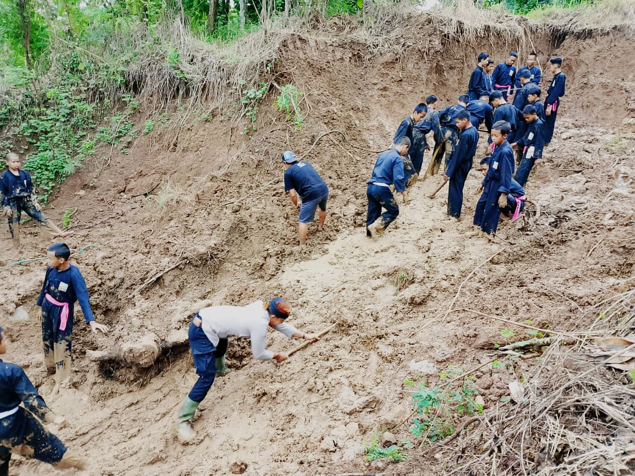 dilakukan untuk membersihkan material longsor yang menimpa rumah Pak Siswanto rt/rw .004/005 dsn Selorejo Ds surat Kec Mojo