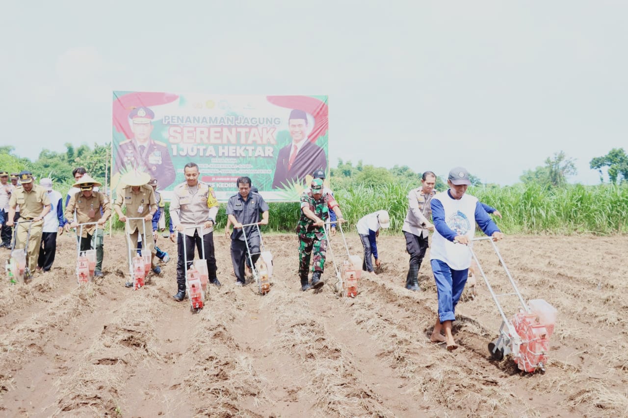 Dalam rangka mendukung program ketahanan pangan nasional, Polres Kediri Kota kembali melaksanakan kegiatan penanaman jagung secara serentak 1 Juta hektar. Merupakan implementasi kerjasama Mabes Polri dengan Kementerian Pertanian RI.