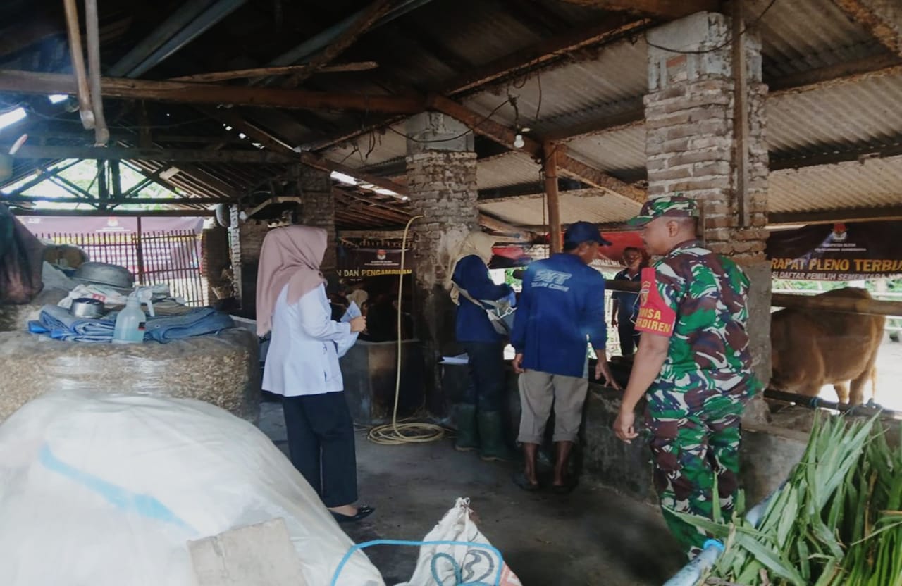 Babinsa Sumberdiren Serda Agus H, mendampingi tim kesehatan hewan dari Dinas Peternakan Kabupaten Blitar melakukan pemeriksaan ke sejumlah peternakan sapi di Kelurahan tersebut. Pemeriksaan meliputi pengecekan fisik ternak, pemberian vaksin, serta edukasi kepada peternak tentang cara mengenali gejala awal PMK.