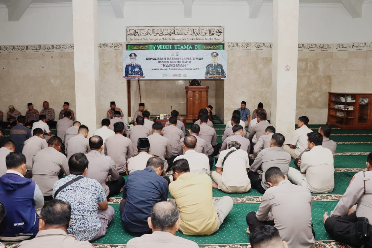Guna meningkatkan kualitas keimanan dan ketaqwaan Personel kepada Tuhan Yang Maha Esa, Polres Kediri Kota rutin gelar Kamis Rohani dan Mental Sampai di Hati (Karomah) setiap hari Kamis usai apel pagi.
