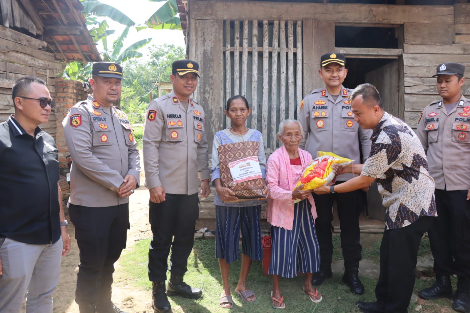 Polres Mesuji Adakan Bakti Sosial Untuk Membantu Para Lansia Di Desa Harapan jaya