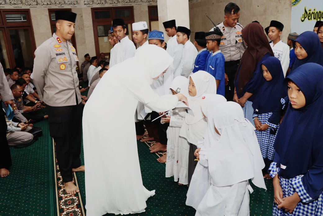 Sebagai penutup, Kapolres Kediri Kota beserta Ketua Bhayangkari Cabang Kediri Kota memberikan santunan kepada anak yatim sebagai bentuk kepedulian Polri terhadap masyarakat.