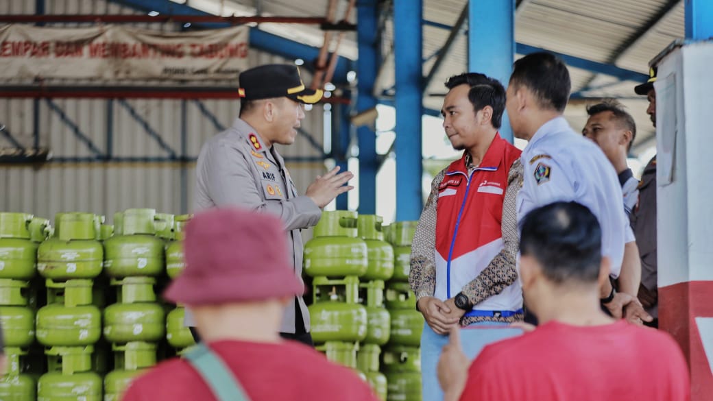 Kapolres Blitar dan rombongan meninjau langsung proses pengisian dan distribusi gas, serta berdialog dengan masyarakat.