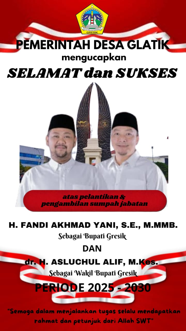 “Atas nama Pemdes Glatik dan mewakili seluruh jajaran, kami mengucapkan Selamat dan Sukses kepada Gus Yani – Dr. Alif sebagai Bupati dan Wakil Bupati Gresik Periode 2025-2030,” ucap Abah Muhamad Sokhiyan. S.S dengan semangat penuh persaudaraan dan kebersamaan, saat dihubungi melalui seluler oleh awak media.