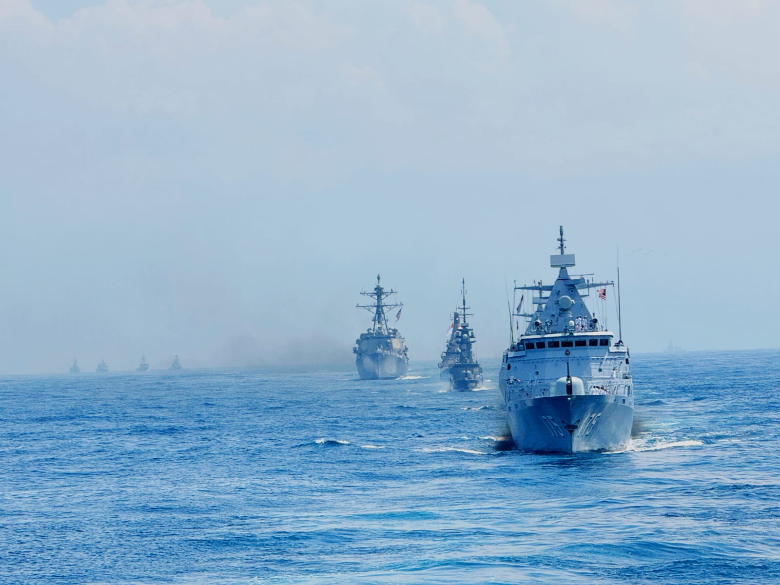 Di Pimpin oleh Pangkoarmada II Laksda TNI Ariantyo Condrowibowo yang on board di KRI Radjiman Wedyodiningrat-992, Sebanyak 19 Kapal Perang Asing, 19 KRI, 7 Heli dan 3 MPA serta seluruh Alutsista yang menjadi peserta 5TH Multilateral Naval Exercise Komodo 2025 membentuk formasi di Laut Bali. Sabtu (22/2/2025).
